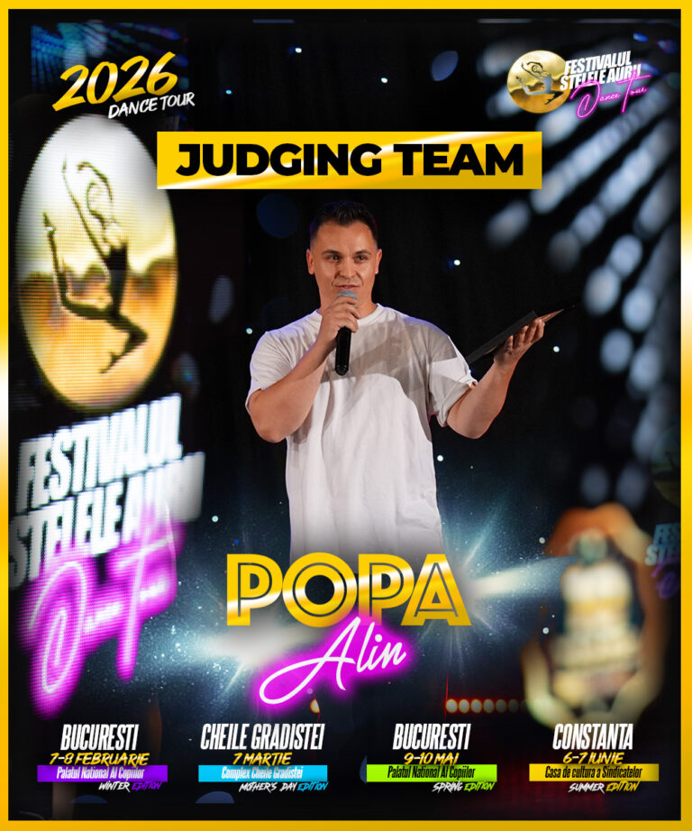 6. By registering for the festival, participants (dancers, teachers, coaches, choreographers) grant permission to the organizer, Asociatia Culturala Stelele Aurii, to use any media content in which they appear (photographs, video recordings, etc.). Participants shall not be entitled to request any financial compensation or material benefits in exchange for the use of such media content.